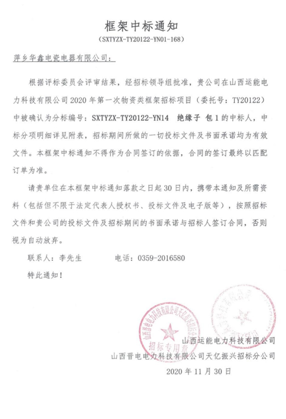框架中標(biāo)通知 (SXTYZX-TY20122-YN01-168)